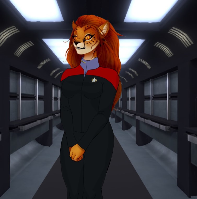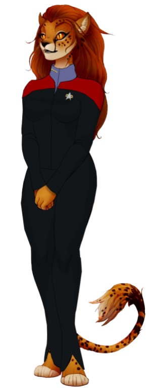 | Personal History | M’Mira was born to M’Rill and M’Trearr. M’Mira was the only girl in her litter. Being the smallest and only female of her litter, M’Mira was pampered and protected from her brothers. Her brothers also were taught to protect M’Mira. Life was good to M’Mira. Her father, being a high level diplomat in the Federation always kept his family in a very pampered lifestyle. Any time that he went to another world, he would always bring a new trinket or M’Mira and his other children, as a token of his affection. Although, M’Mira did not need to work, due to her parents’ positions in life, M’Mira parents instilled the value of hard work. After all, her parents reminded her that they would not be there forever. Furthermore, it was important that one be self-sufficient because if one was at the mercy of others, those others could take advantage of you. Almost paradoxically, M’Rill taught M’Mira that her job as the sole female was to bring more cubs into the world. To do that, she would need to attract a worthy mate. This, she was taught, meant always looking her finest. According to M’Rill, men always went for a pretty face before intelligence. Having both, however, would make her an inescapable catch. Though M’Mira had many suitors, she often bored of them quickly and discarded them before a serious relationship developed. Taking her parents advice, since she was on her own, she enlisted in Starfleet. Her grades varied greatly. When she was interested in the professor or the subject, her grades were very good. When the class held no interest, her grades suffered. Luckily, because there were so many subjects, she rarely found herself completely bored. Of course, she found that because she had diverse interests, she could not choose one particular field. Her strengths lay in science (particularly physics) and engineering. She graduated with honors in those subjects and later found that the operations division would be best suited for her. Throughout her Starfleet career, because she easily bored, she never stayed in one place more than two years prior to arriving at Faltan Station. Eventually, she decided that starships were all boring. There was nowhere to explore inside a “tin can.” She wanted to roam and prowl. So, when the opportunity came at Falton Station to rebuild the station, she pounced. Once the planetary station was fixed, M'Mira thought that she would be able to lead the easy life. Unfortunately, nothing could be further from the truth. The CO and XO ended up in a relationship with the XO becoming pregnant. The CO got transferred and the XO took over. Then, the XO left due to Candy Templeton's reporting. This left M'Mira the most senior officer and in charge of the station. |