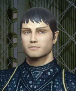 | Physical Description | Telhas is of ancient nobility, with already his Vulcan ancestors being royalty. He is very proud of his heritage, a pride he does not hide. Typically he wears robes in the ancient style of Vulcan dukes, in a silky, navy blue tone. He also tends to gird the 6,000-year-old Vulcan sword inherited. His physical features are much more Vulcan than Romulan. Indeed, most people take him as Vulcan rather than Romulan. |